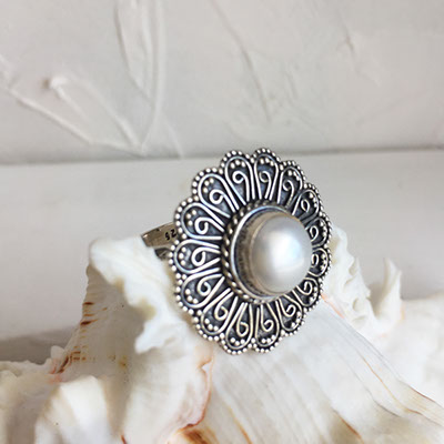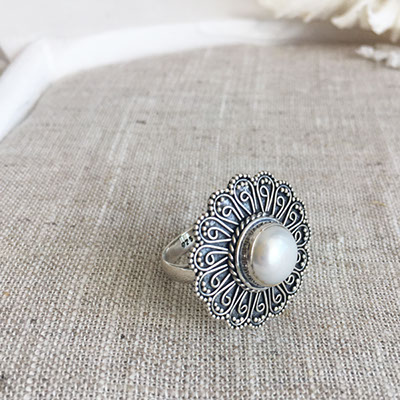 ☆繊細なシルバーワークとノーブルなパールのリング☆