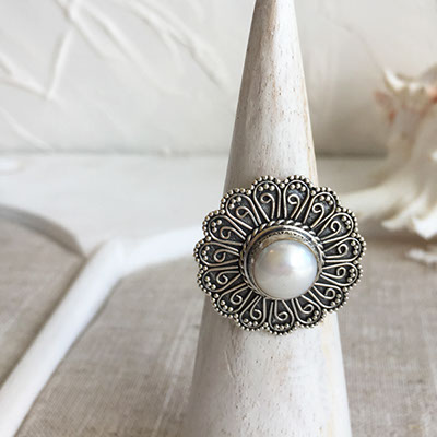 Ring Balinese Bun Pearl Flower