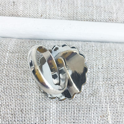 パッと目を引く繊細なシルバー細工のリング。